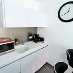 アクアリュ-ドからほんの0.9kmにあるMaison Bleue - Apt 4 Pers, 2 Chambres, Prox Marche Le Touquet は街路の景色を望むル-ムを提供します. この施設には,電子レンジ,電気ポット と冷蔵庫を完備した器具でいっぱいの台所があります.